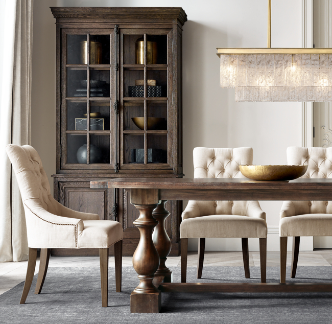 Restoration Hardware Modern. | Modern dining room, Dining room decor French Casement Double Door Sideboard & Hutch Heston Rectangular Dining Table | Dining room table, Concrete Madeleine Side Chair Martine Tufted Fabric Armchair | Linen dining chairs, Dining 9 Restoration Hardware Copycat Items for Less Money Round restoration hardware dining table & crisscross chairs. Love Restoration Hardware Look A Like Dining Rooms Beaus and Ashley The Dining Room! (With images) | Restoration hardware dining room